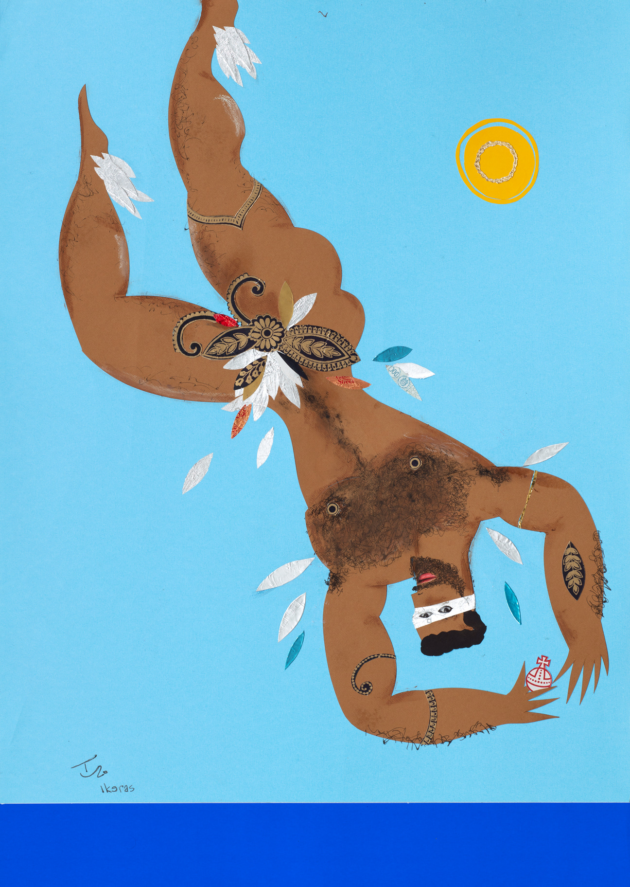 Created from unwanted materials like packaging, foil wrappers, embellished with oil chalks and ink . I like finding material to work with it provides me with a sense of unpredictabILITY OUT OF control THINKING. It sets me a challenge To make sense OUT OF CHAOIS.